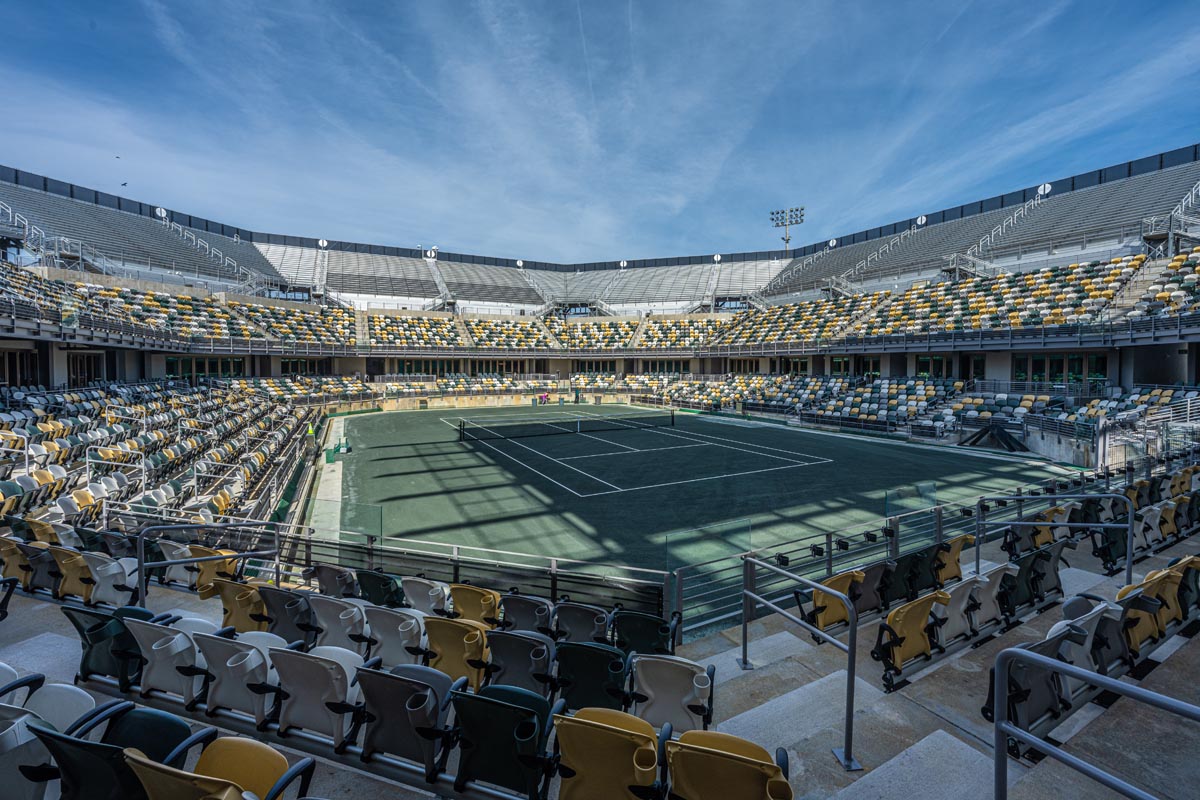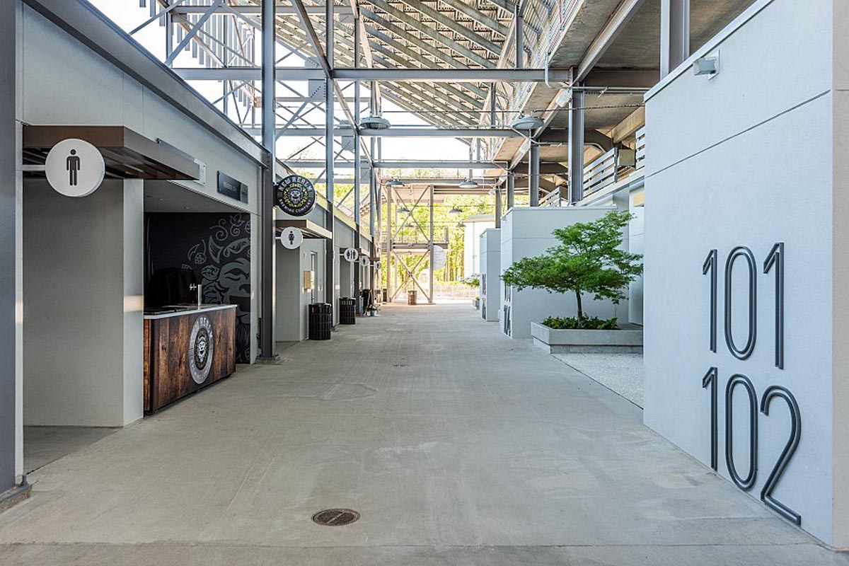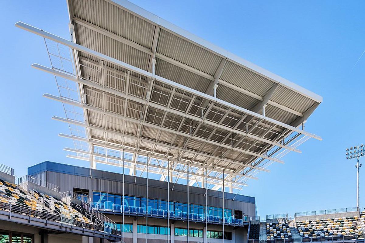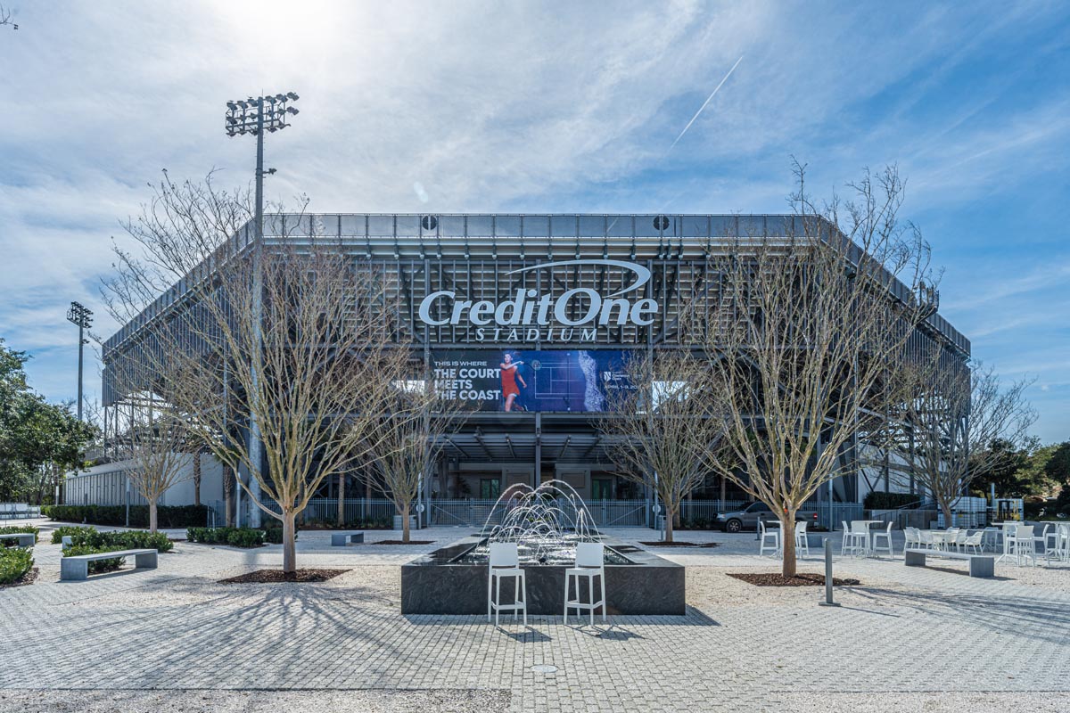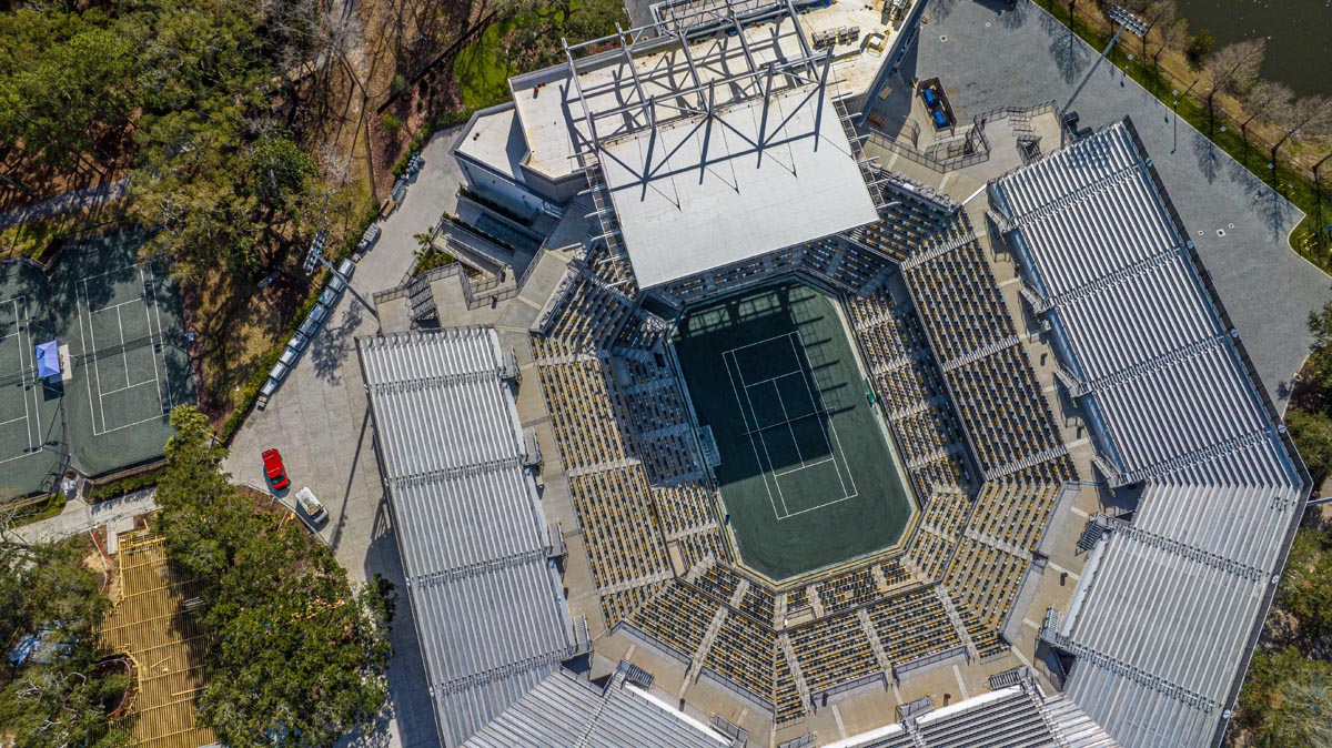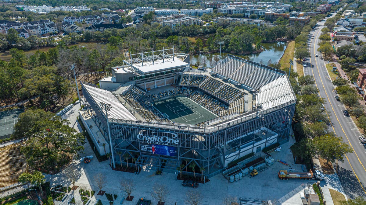 After 20 years as Charleston’s premier event venue, Credit One Stadium (formerly Volvo Car Stadium), underwent an extensive renovation to enhance guest experience and attract world-class athletes and performers. The renovation increased the seating capacity from 7,000 to 11,000 seats and features a new 800-ton steel cantilevered canopy system for shade and staging. The 110-foot elevation which required a 200-foot crane and operator, could only be painted by hand.