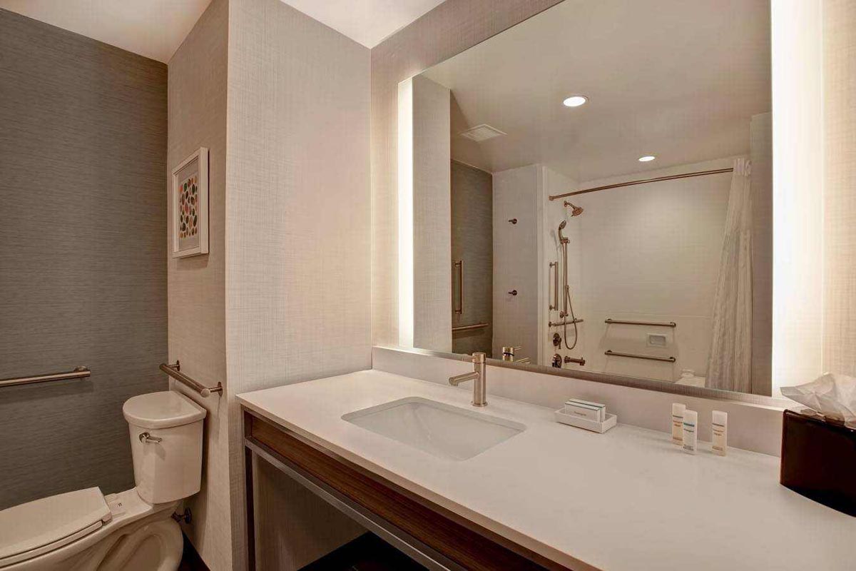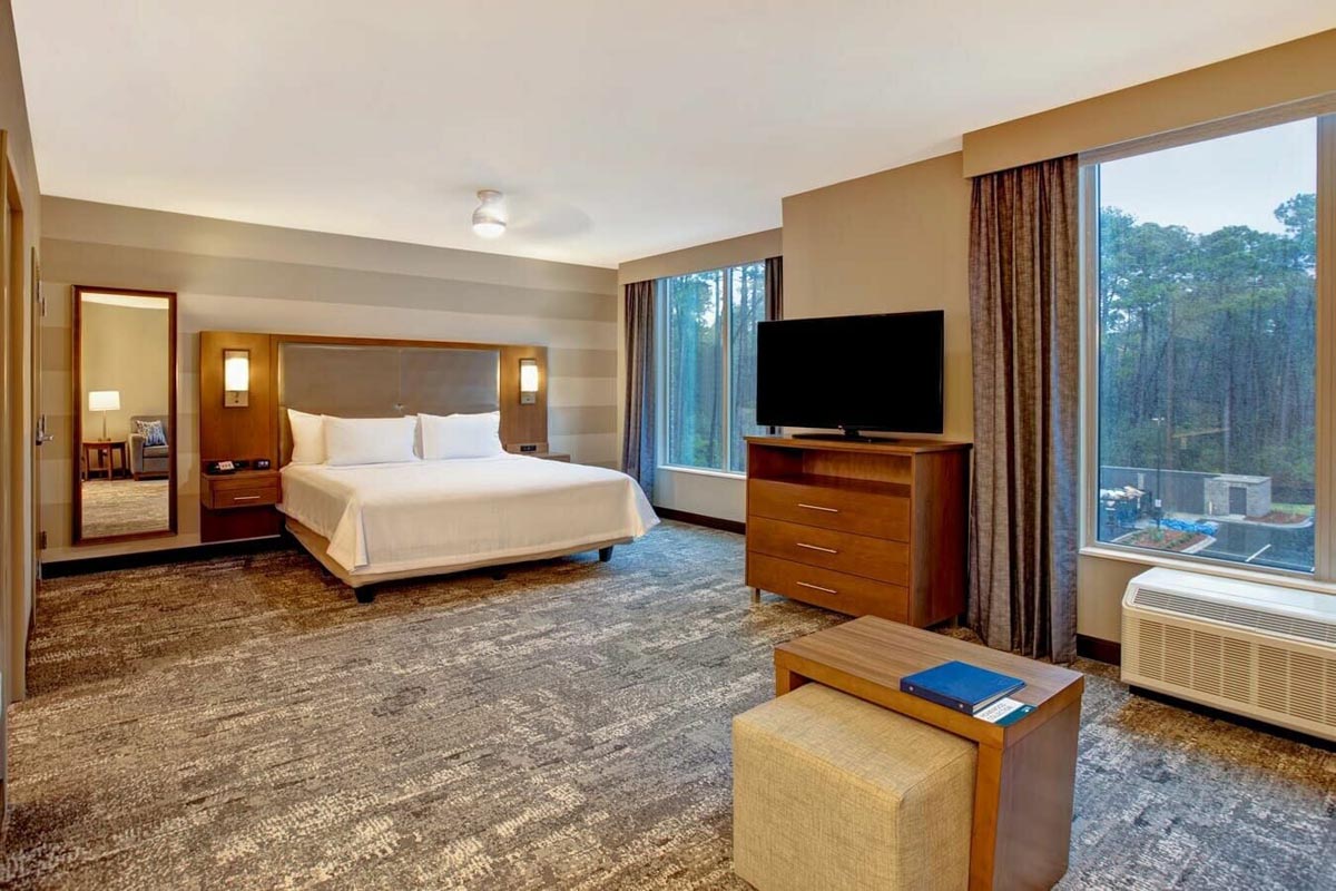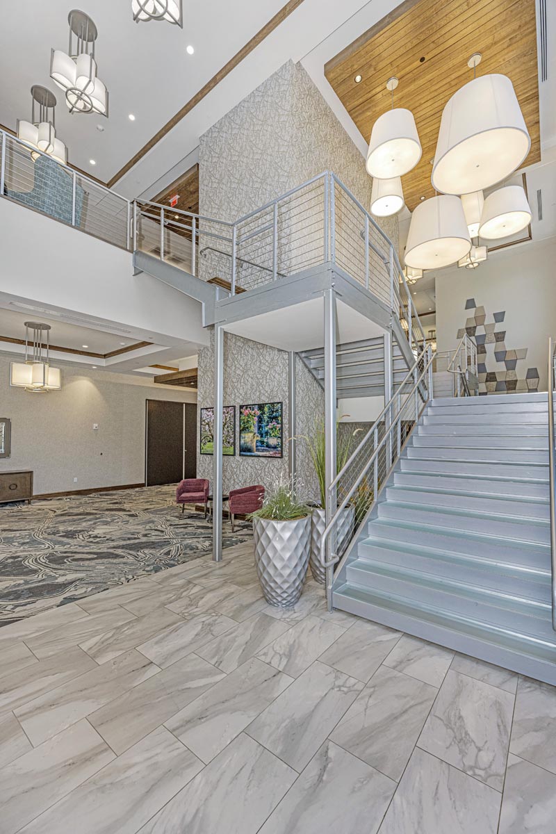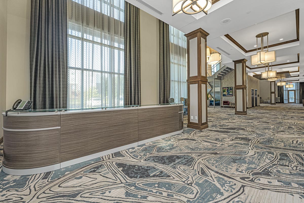 The Hilton Garden Inn & Homewood Suites hotel and Lowcountry Conference Center in Summerville, SC, sits within the Nexton community. The dual-brand concept caters to both select service and extended stay hotel customers through one property. This eight-story structure with 250 guest rooms is the tallest building in Summerville and Berkeley County. A two-story, 36,000 square foot conference center is attached to the hotel. This project featured 25 different wallcovering patterns and 24 different paint colors.
