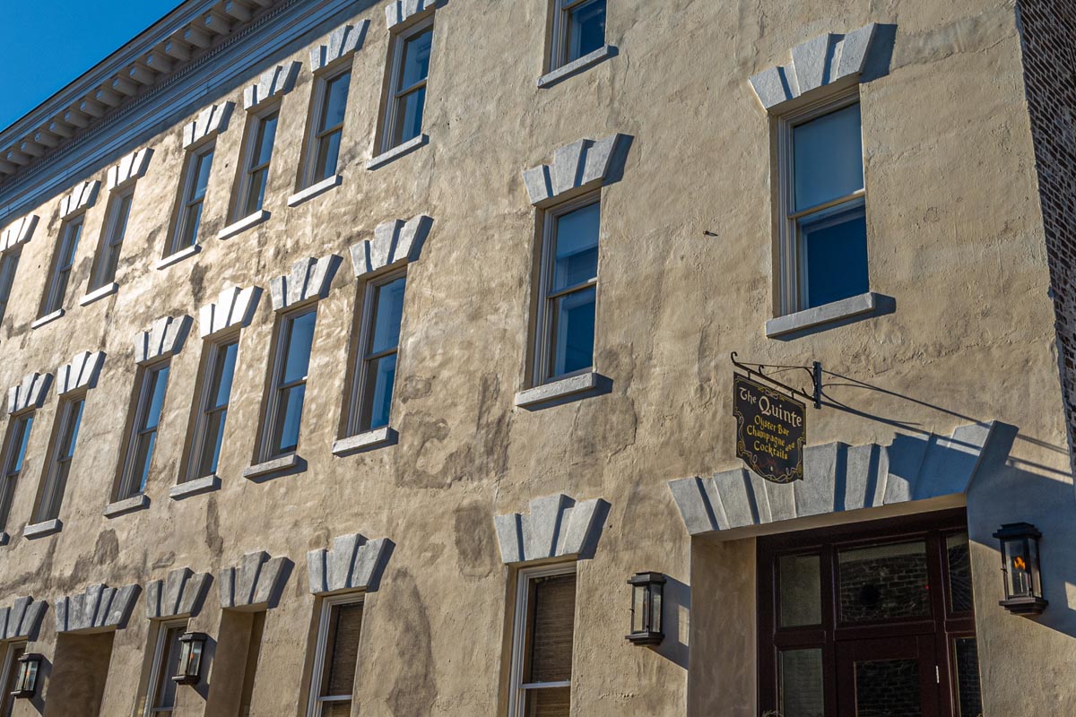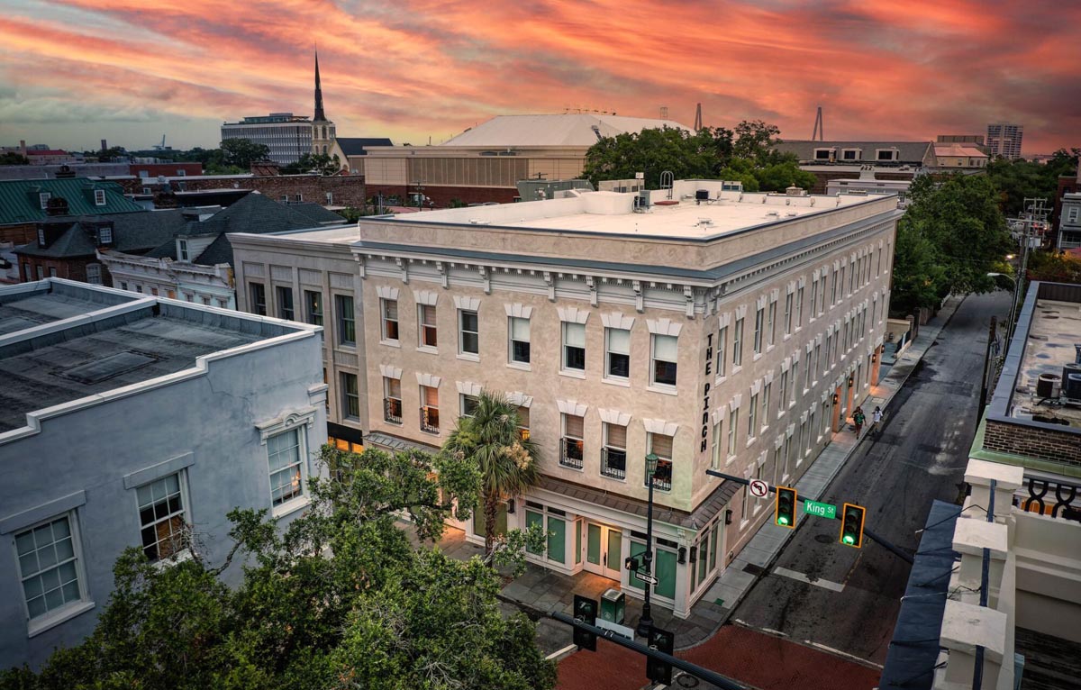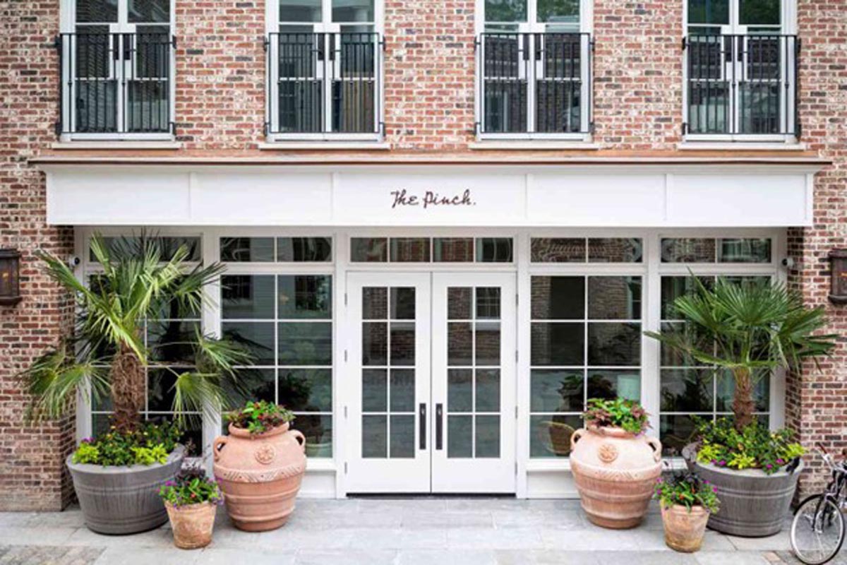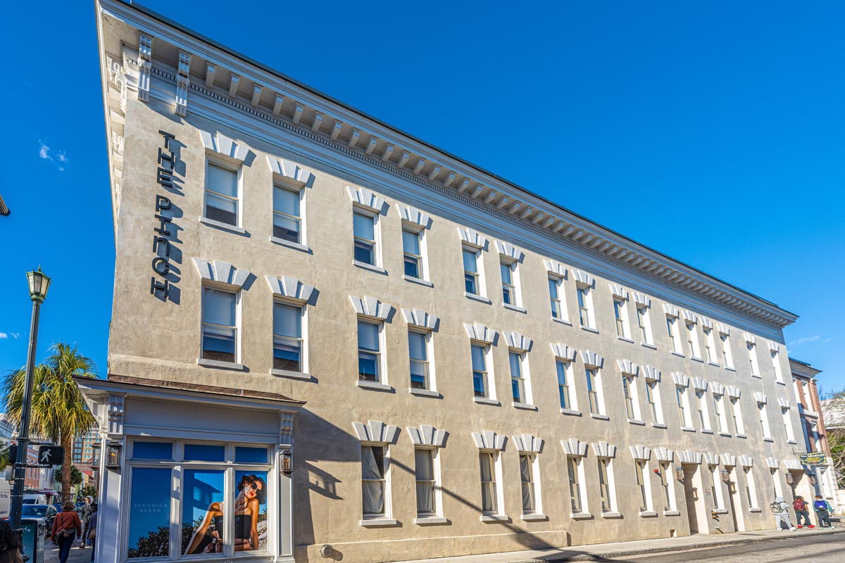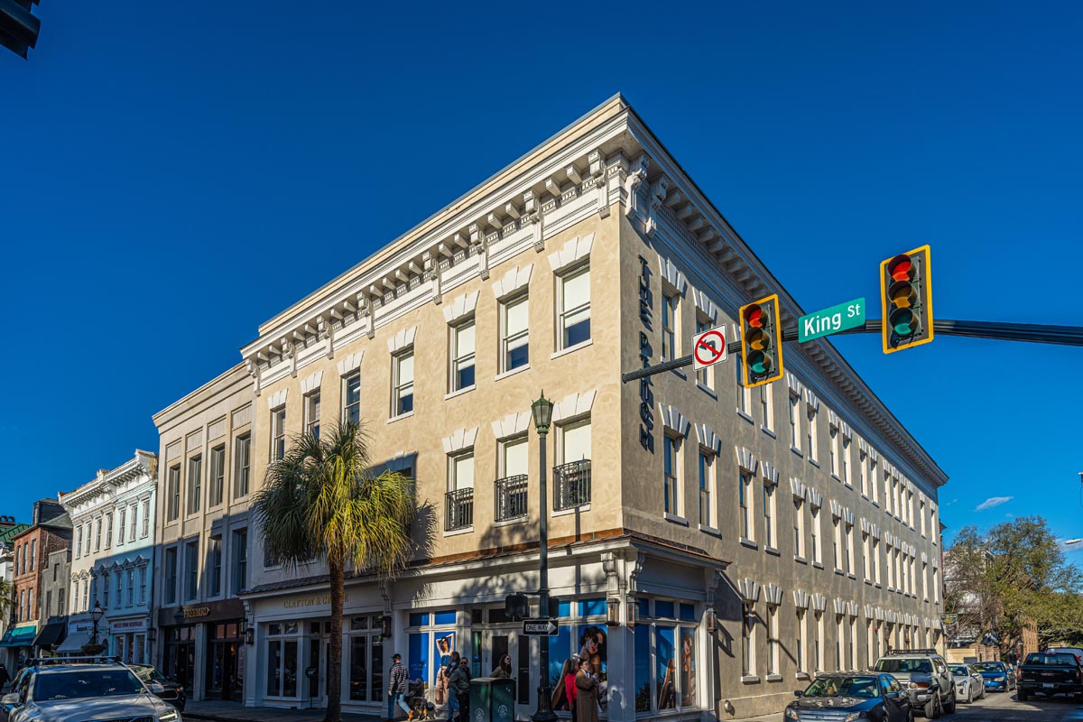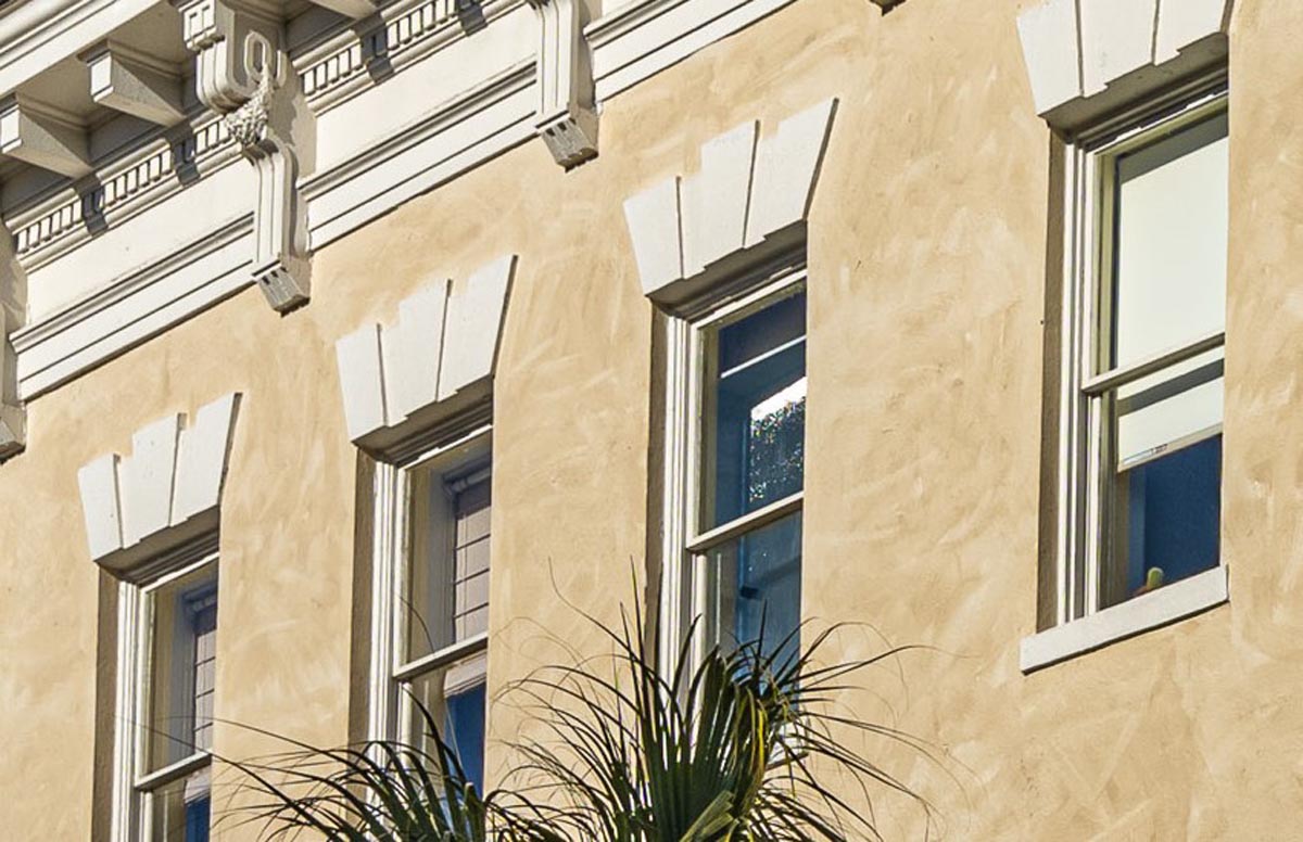 The Pinch Hotel is a 22 room boutique hotel, right on King Street in the heart of historic downtown Charleston. It is the renovation of the old Bob Ellis Building. Besides the elaborate finishes, the architects wanted the exterior stucco to have an aged patina look in lieu of just being painted. We produced several mock-up panels being careful it was something our guys could reproduce on a three-story building and would also pass the BAR. Surprisingly, it went very well.