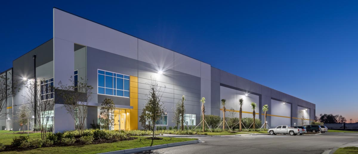 Located in West Branch Commerce Park, this facility includes warehouse and packaging space, along with 4,500 square feet of office space. The exterior tilt-up concrete panels were painted with a textured coating and feature accent bands that complement the company’s logo.